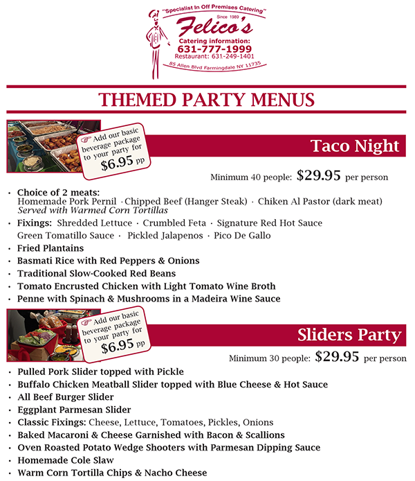 - Themed Party Menus