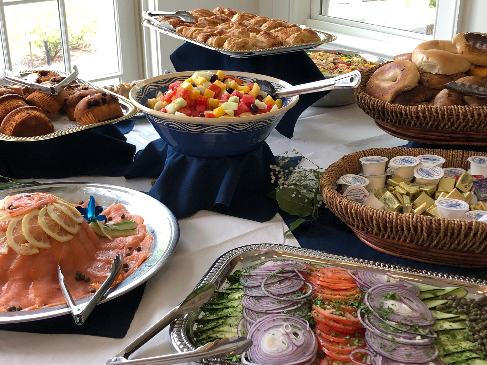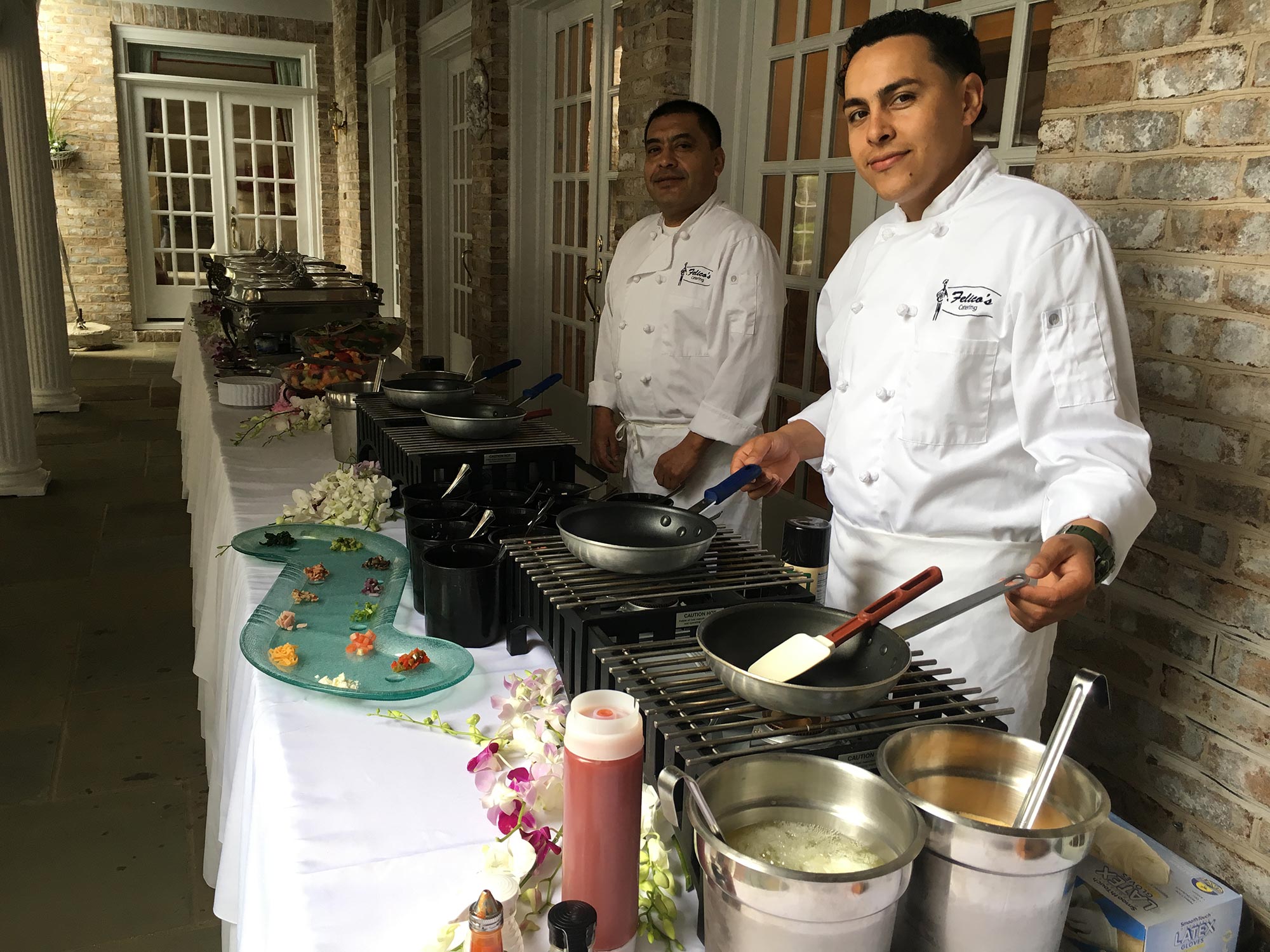 Let your business rise and shine with a breakfast catered by Felico's Catering, served around the clock, as early or as late as you may need it. Take a look at our sample Breakfast Menus featuring different catering options ranging from cold continental breakfast to hot breakfast cooked to order by our professional chefs right in front of you. You can even add a healthy touch to traditional fair with oatmeal or yogurt stations. Your catered breakfast comes complete with a gourmet coffee setup, all utensils and paper goods.