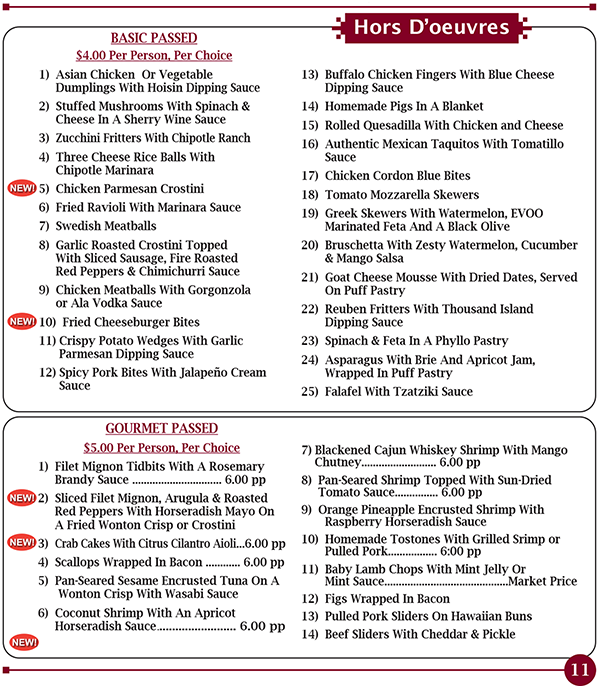 - Full Catering Menu