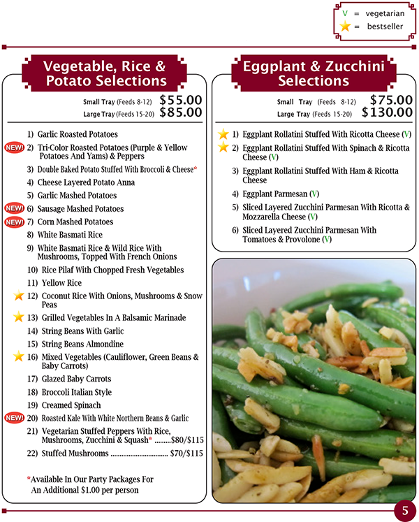 Party Packages | Pasta | Chicken | Vegetables, Rice & Potato