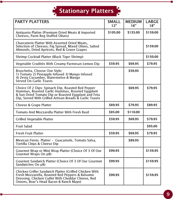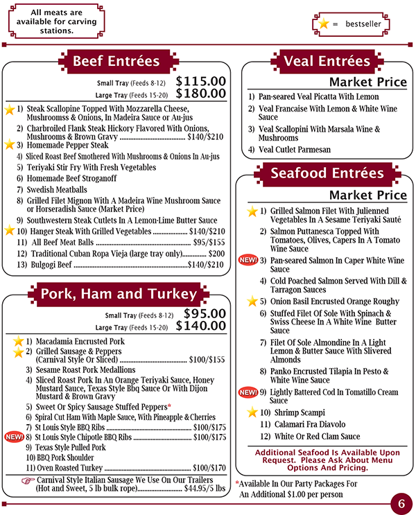 Beef, Veal, Pork & Seafood | Salads | Hors D'oeuvres | Stationary Platters