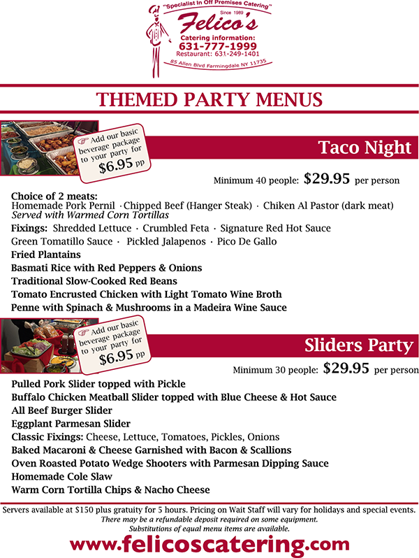 - Themed Party Menus